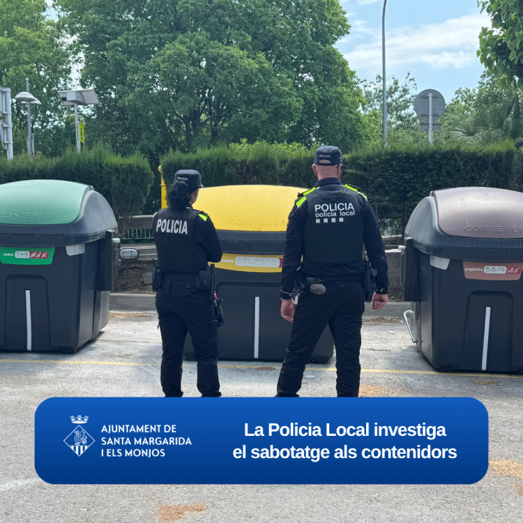 L’Ajuntament de Santa Margarida i els Monjos ha activat un dispositiu de la Policia Local per identificar els responsables dels actes de sabotatge detectats aquest matí en diversos contenidors del municipi, coincidint amb la posada en marxa del nou sistema de recollida amb accés mitjançant clauer.